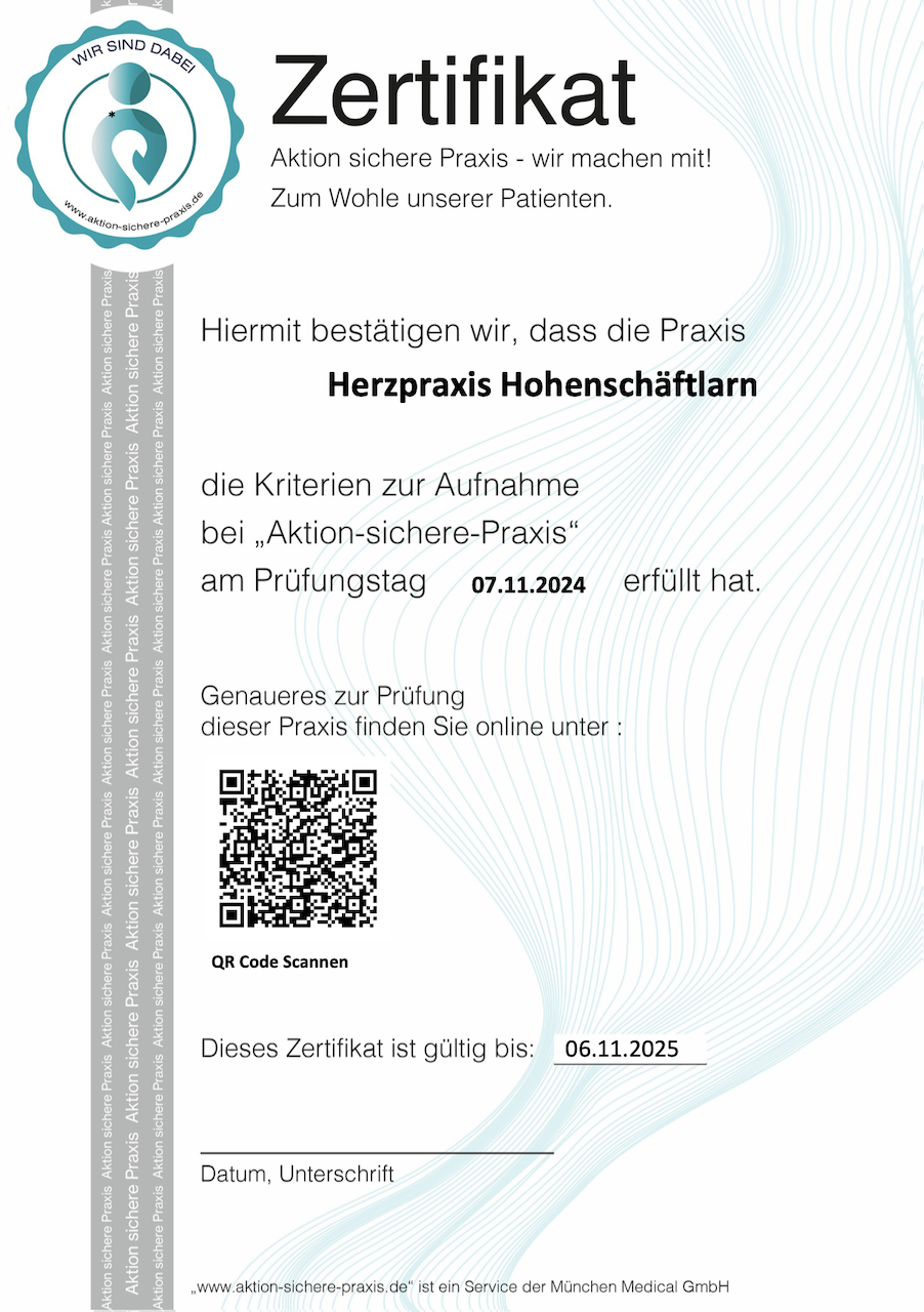 Am 21.11.2025 wurden in der Herzpraxis Hohenschäftlarn folgende Punkte überprüft: