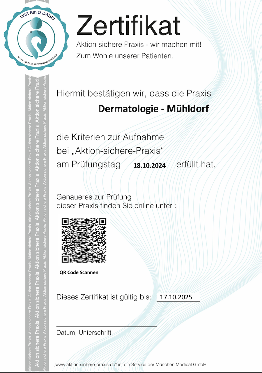 Am 28.11.2025 wurden in der Hautarztpraxis „Dermatologie Mühldorf“ folgende Punkte überprüft: