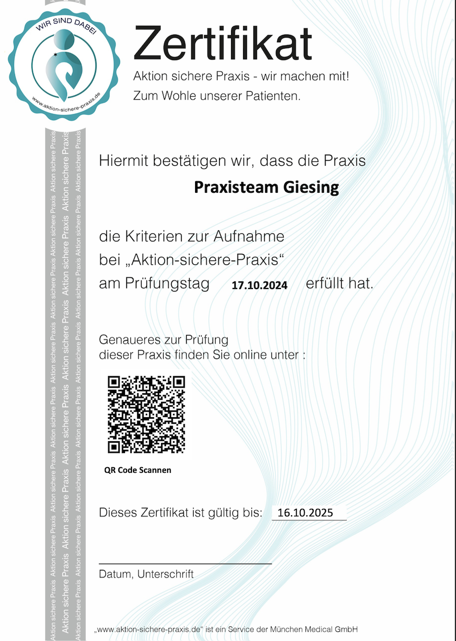 Am 22.10.2025 wurden in der Praxis Praxisteam Giesing – Hausärztliche Versorgung folgende Punkte überprüft: